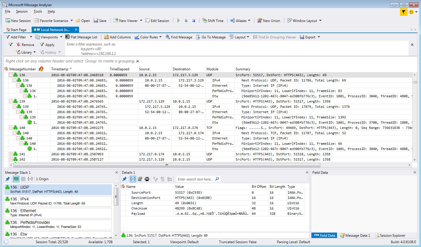 Have you ever heard of Microsoft Message Analyzer? While troubleshooting some networking issues with Windows Server 2012, I requested the application owner to install Wireshark. Being a good systems admin, the application owner was naturally suspicious of an application with ‘shark’ in it’s name. Despite my insistence, I wasn’t able to convince the administrator to install Wireshark. We decided to look at alternatives – and came across Microsoft’s own Windows Message Analyzer! (WMA).