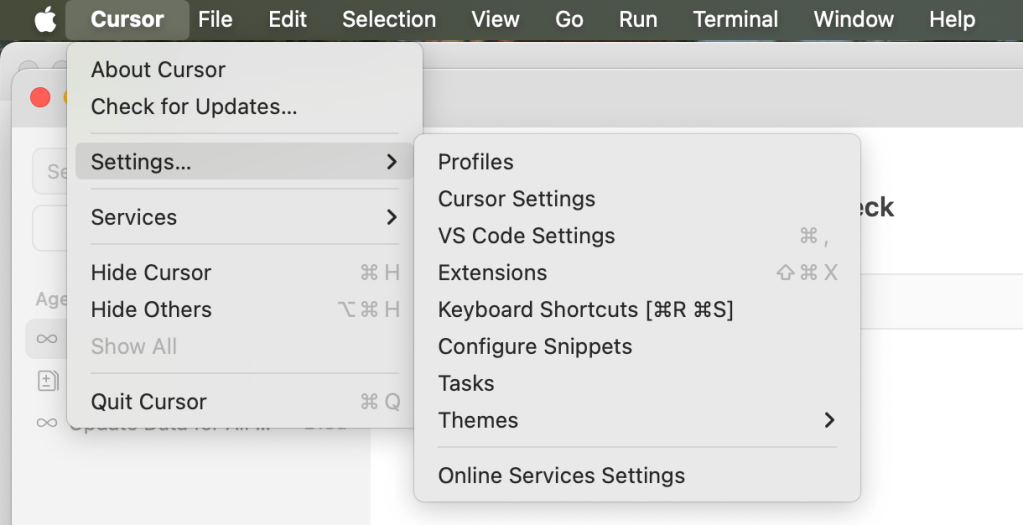 Same steps as above, but showing screenshots (Cursor change UI often so this might look a little different within a few months).