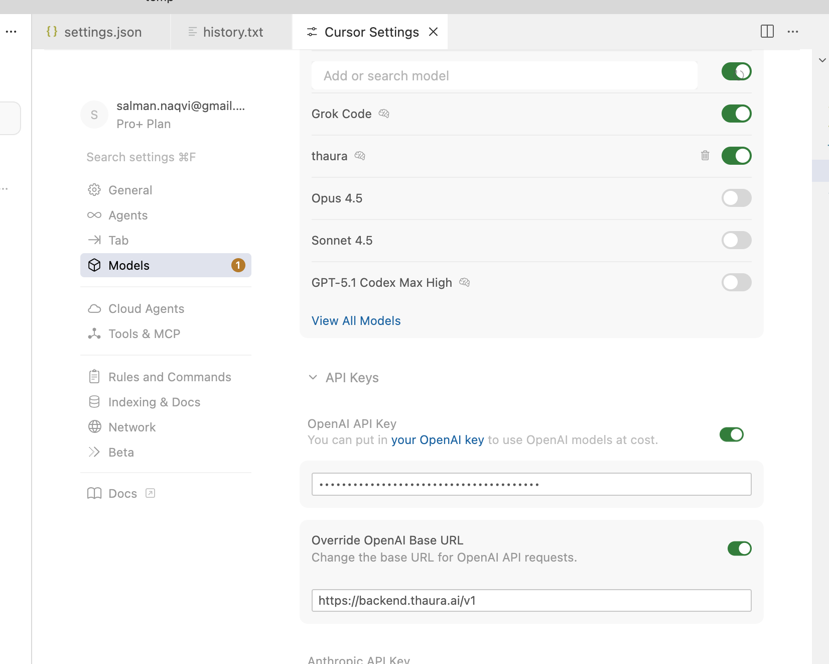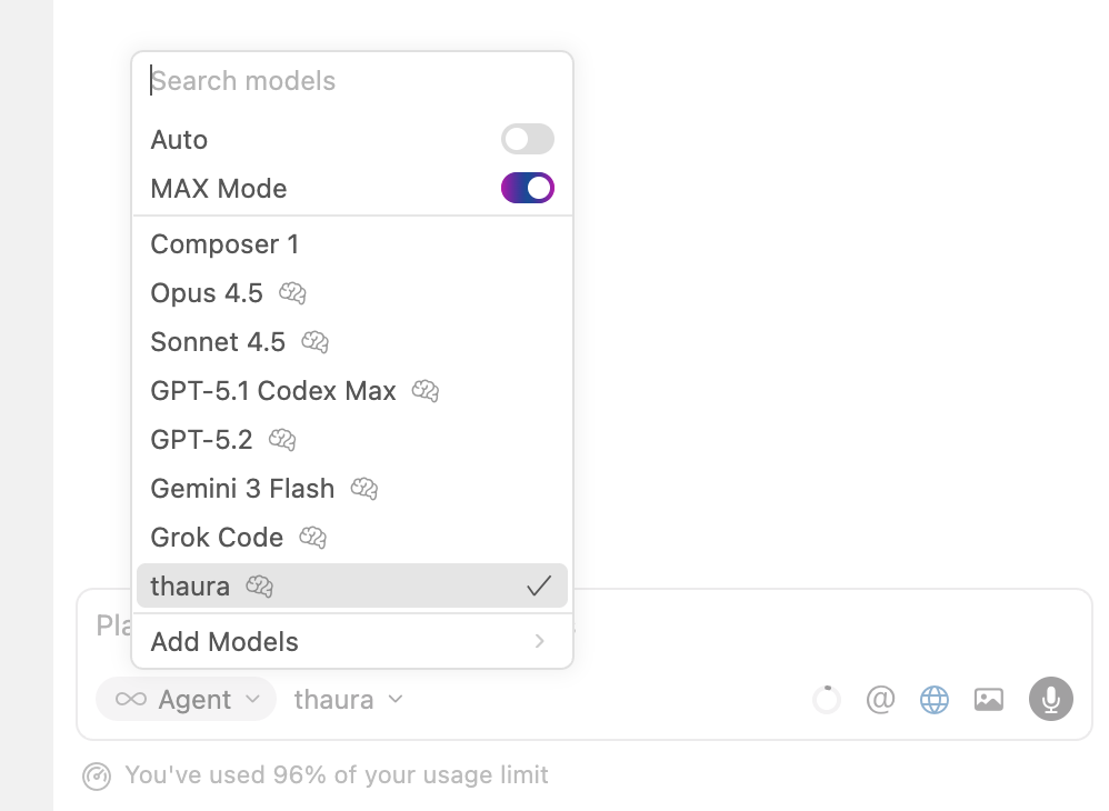 Setting up Thaura AI with Cursor is super easy and totally worth it. You get all the benefits of AI coding assistance without the privacy concerns that come with big tech services. Plus, you’re supporting ethical AI development!